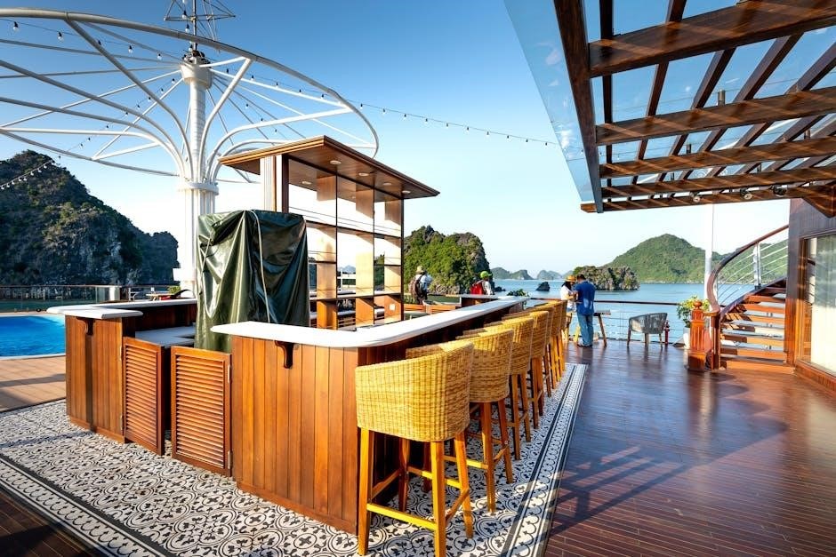 Utilizing the PDF‚ guests can pinpoint the best spots for sunbathing‚ identify the locations of various bars offering refreshing beverages‚ and plan their route to enjoy the ship’s breathtaking vistas․ The deck plan also details the placement of whirlpools and other leisure facilities‚ aiding in efficient cruise planning․