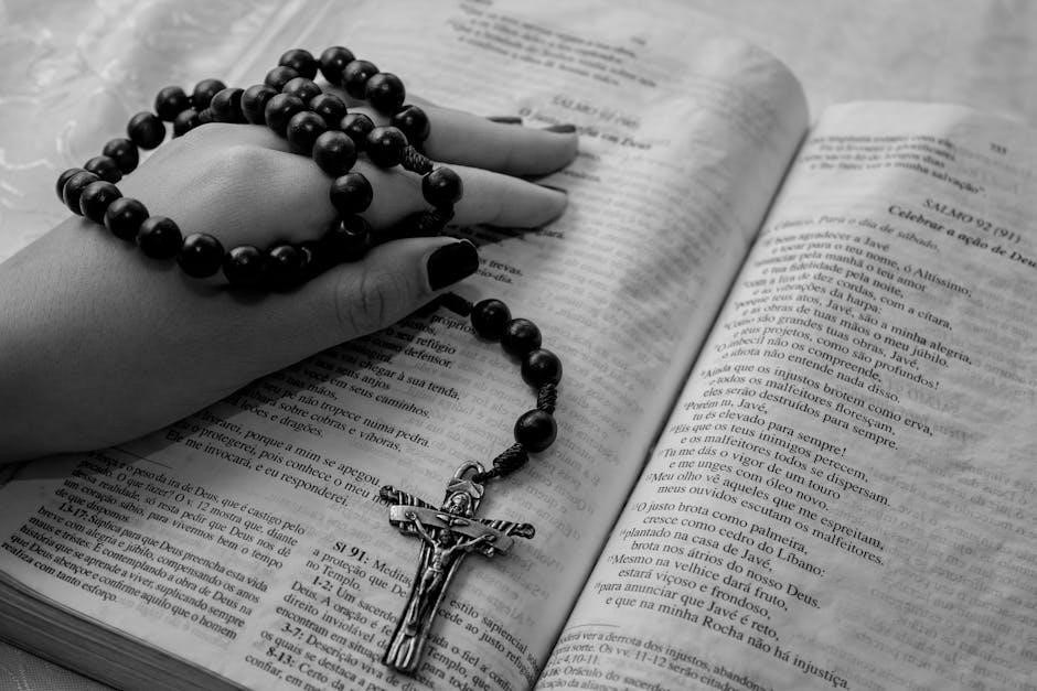 Integrating Scripture into Rosary prayer transforms a devotional practice into a meditative encounter with God’s Word. The Scriptural Rosary‚ often found as a downloadable PDF focusing on the Sorrowful Mysteries‚ anchors faith in the historical Jesus. By reflecting on passages like Matthew 26-27‚ believers experience the Passion more vividly. This method combats rote recitation‚ fostering deeper empathy and understanding of Christ’s sacrifice‚ ultimately strengthening one’s relationship with Him through informed‚ prayerful contemplation.